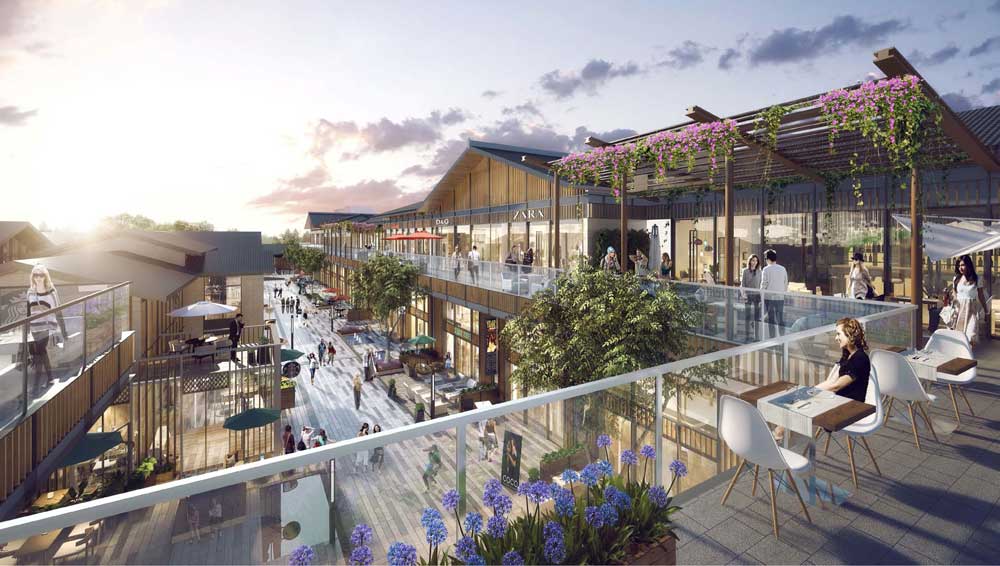 商業(yè)街外立面選用仿木型材及鋁板,屋頂采用琉璃瓦,將仿古建筑的歷史韻味和科技感、時尚感融為一體。