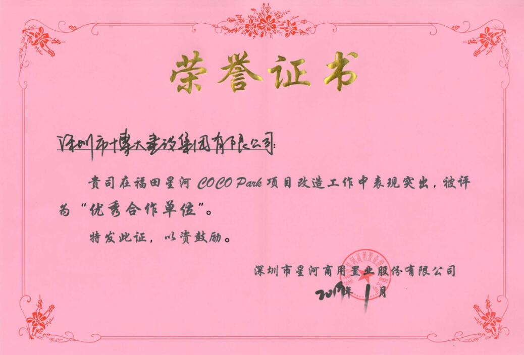 六、星河地產(chǎn)集團2018年度優(yōu)秀供應(yīng)商
