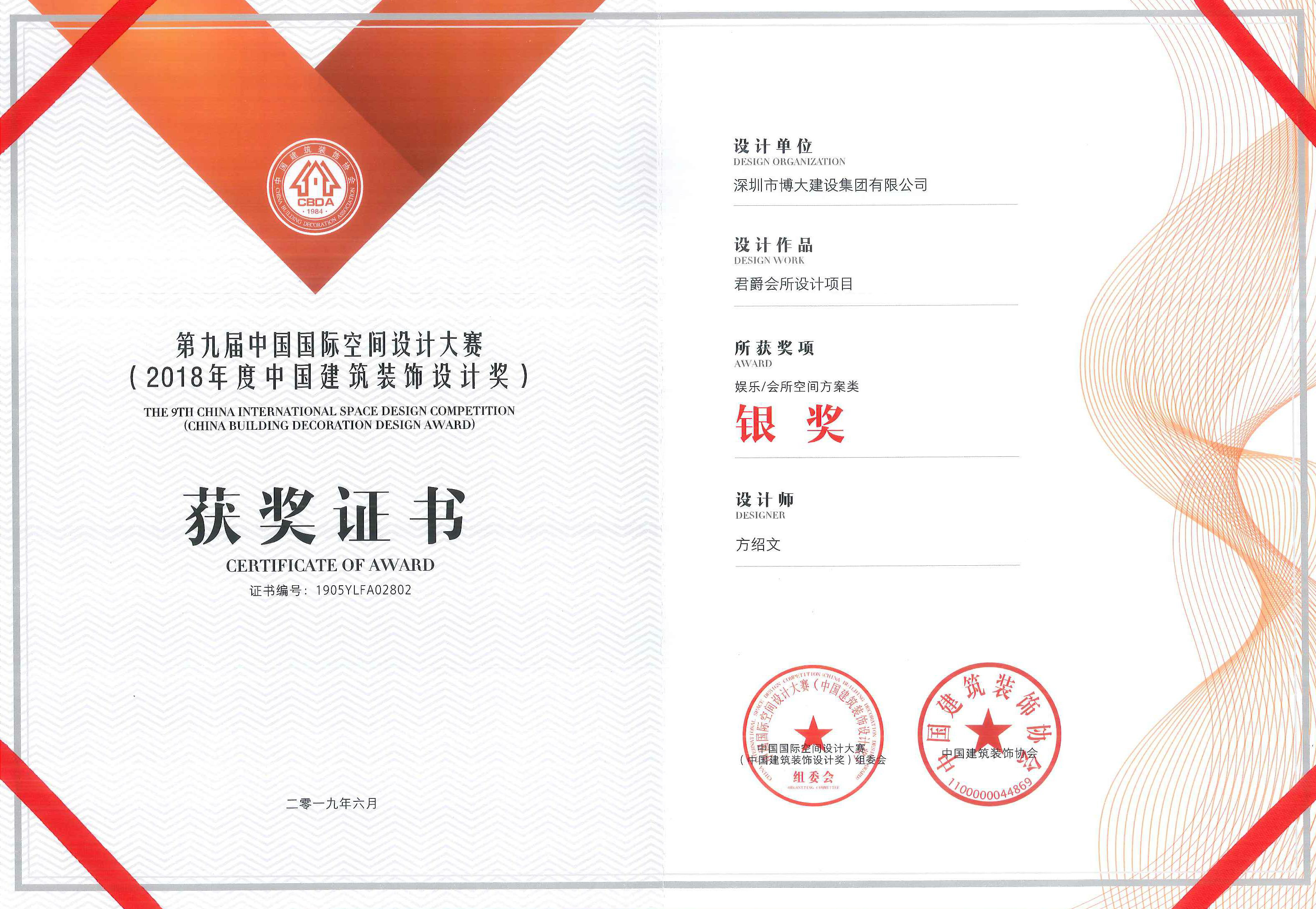 匠心品質(zhì),設(shè)計(jì)為先。近日,深圳市博大建設(shè)集團(tuán)在第九屆中國國際空間設(shè)計(jì)大賽(中國建筑裝飾設(shè)計(jì)獎)的評比中再斬三項(xiàng)設(shè)計(jì)大獎,這是博大設(shè)計(jì)實(shí)力不斷增強(qiáng)的又一個重要見證!
