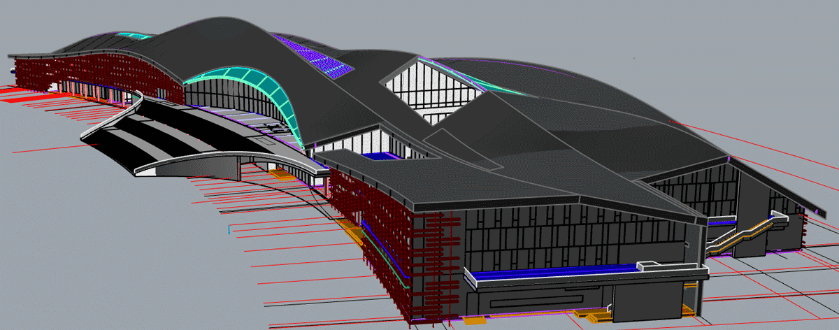 本工程結(jié)構(gòu)設(shè)計(jì)造型較復(fù)雜、幕墻體系層次復(fù)雜,博大配備高素質(zhì)的幕墻深化設(shè)計(jì)團(tuán)隊(duì),應(yīng)用三維建模及BIM管理平臺(tái)進(jìn)行幕墻系統(tǒng)空間碰撞檢測(cè),全力保證施工質(zhì)量和效率。