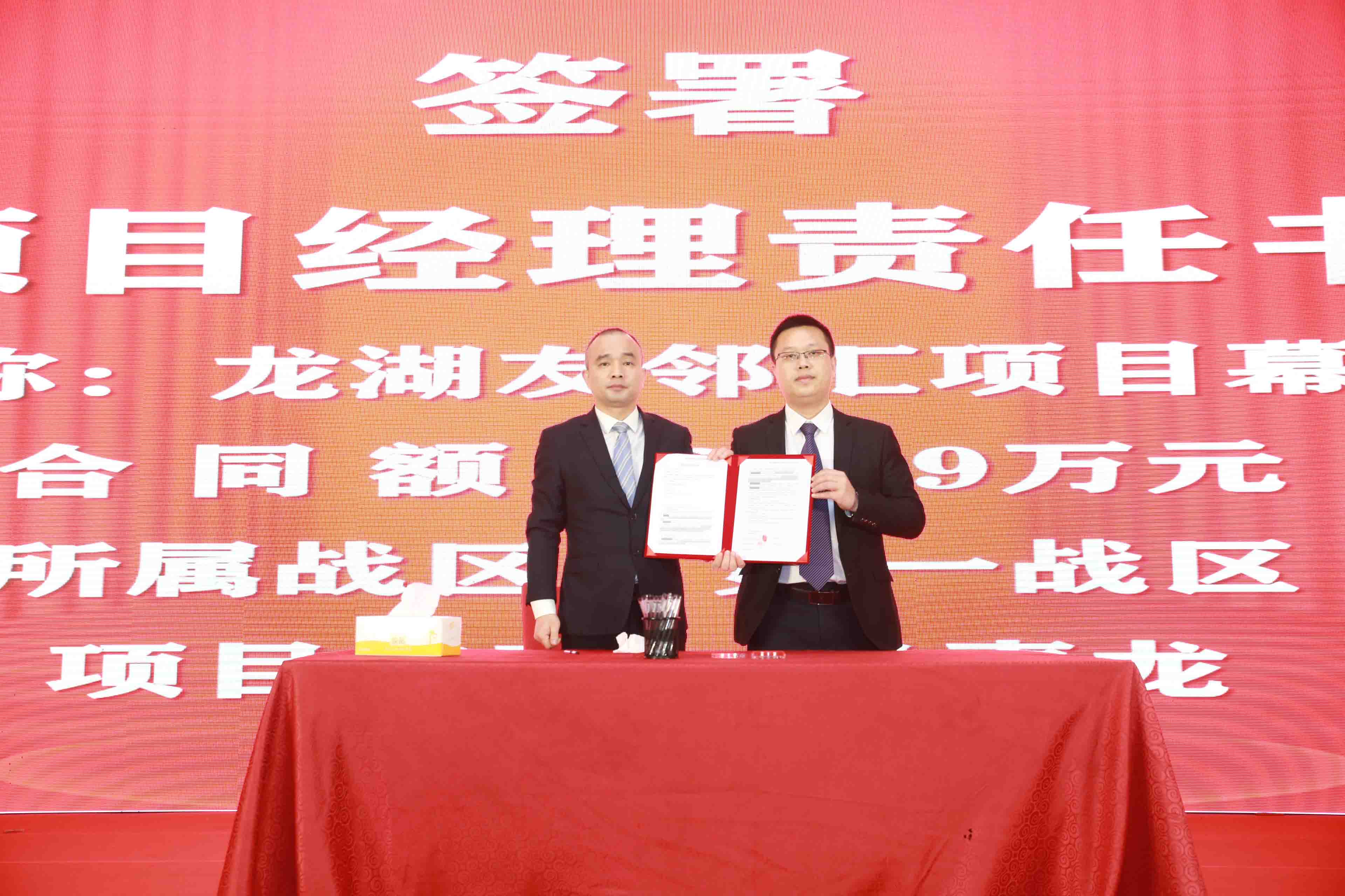 百舸爭(zhēng)流千帆競(jìng),莊嚴(yán)宣誓奮者先。2021年項(xiàng)目經(jīng)理簽約儀式、目標(biāo)宣誓大會(huì)現(xiàn)場(chǎng)莊嚴(yán)神圣,20位項(xiàng)目負(fù)責(zé)人作為集團(tuán)新開(kāi)工項(xiàng)目代表與工程管理中心總經(jīng)理何學(xué)軍、副總經(jīng)理徐朝華簽訂《項(xiàng)目經(jīng)理責(zé)任書(shū)》,強(qiáng)化履約主體責(zé)任。