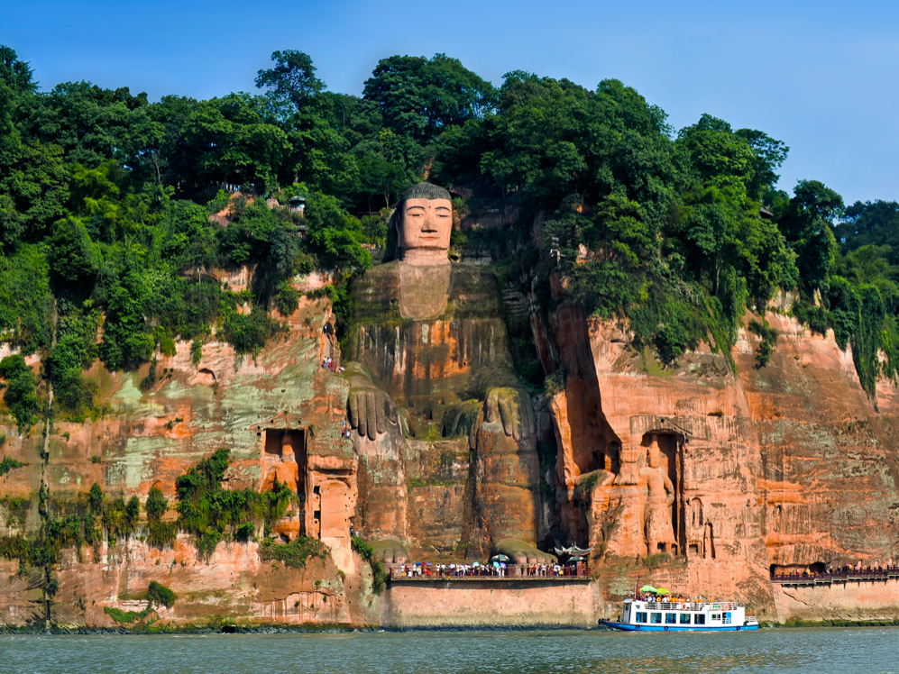 樂(lè)山大佛,又名凌云大佛,位于四川省樂(lè)山市南岷江東岸凌云寺側(cè),瀕大渡河、青衣江和岷江三江匯流處。大佛為彌勒佛坐像,通高71米,是中國(guó)最大的一尊摩崖石刻造像。