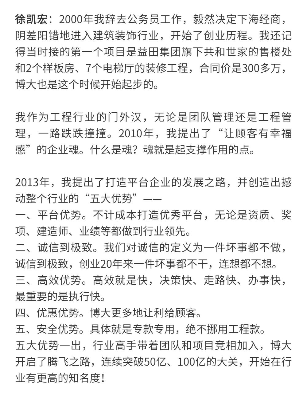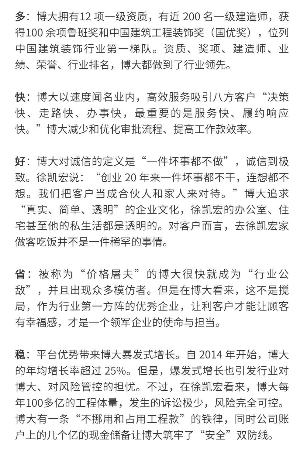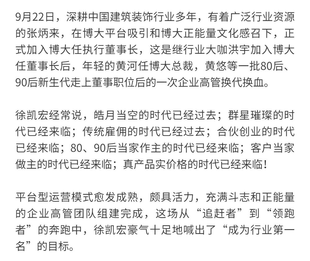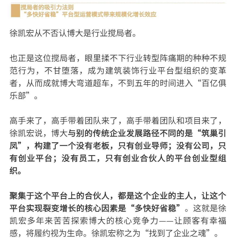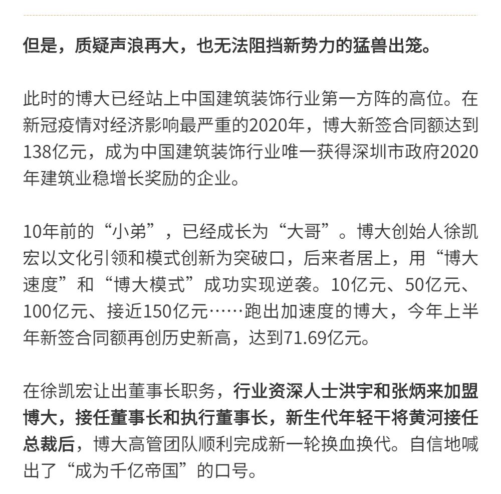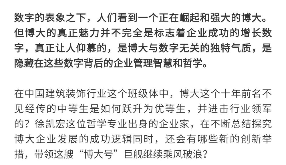 恰逢博大建設(shè)集團再次躍升至中國建筑裝飾行業(yè)百強第3名的喜訊,現(xiàn)把兩篇深度好文再次轉(zhuǎn)發(fā),以饗讀者。